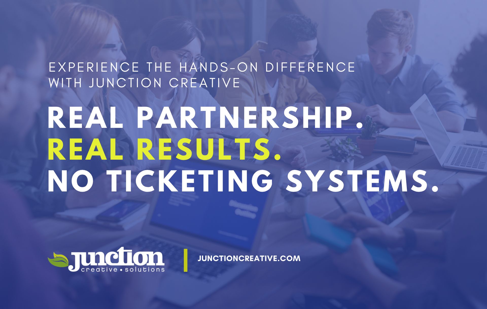 Junction Creative helps businesses achieve measurable growth through agile, hands-on marketing. No ticketing systems. No delays. Just responsive service and strategies that move your business forward. Switch to a partner that delivers real performance, not excuses.